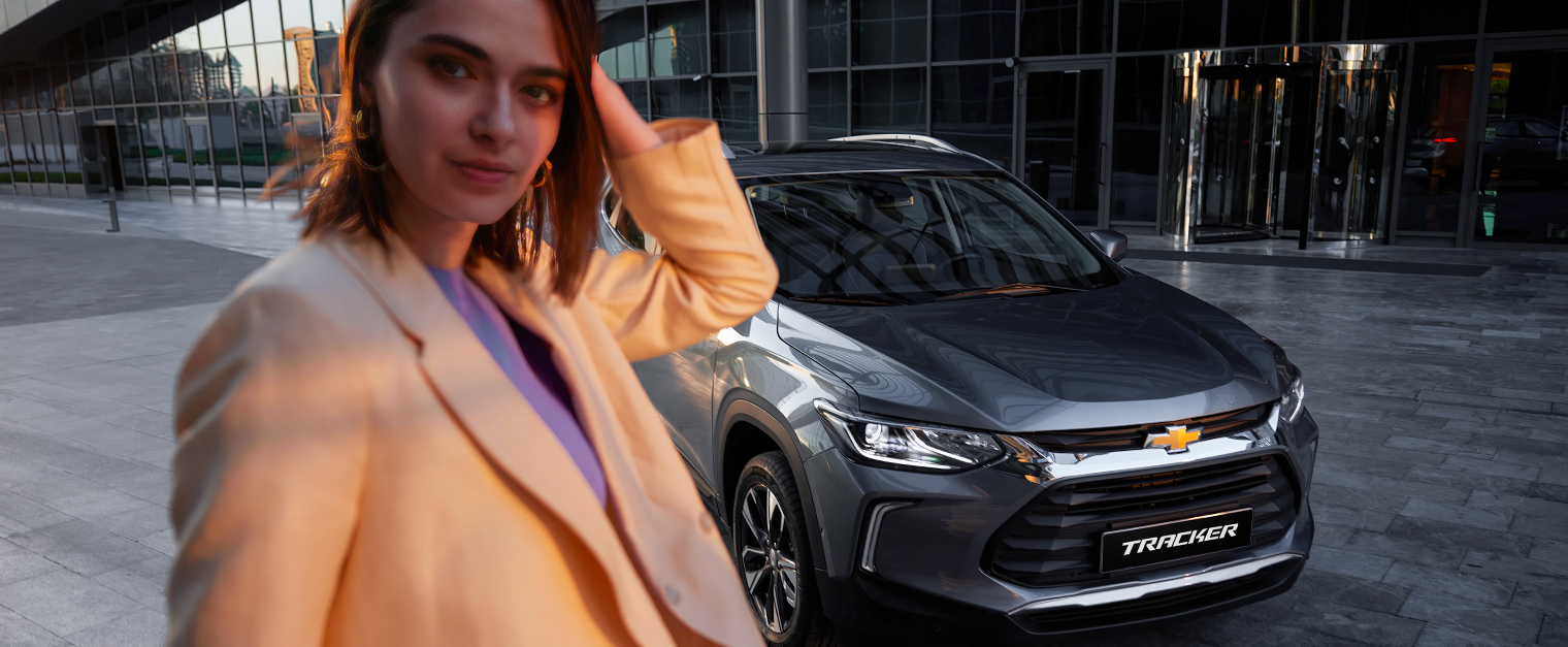 Chevrolet Tracker - стильный и просторный внутри. Спортивный и уверенный на дороге. Этот компактный кроссовер предлагает комфорт и возможности, необходимые для Вашего следующего городского приключения. Предлагая спортивное исполнение, удивительно просторный интерьер и доступные передовые технологии безопасности и развлечений, Tracker готов помочь изменить Ваше движение, исследуя каждый уголок Вашего города.